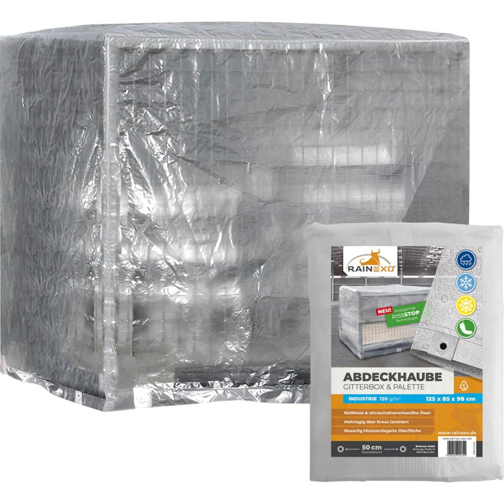 • Hochreißfeste Abdeckhaube für Gitterboxen