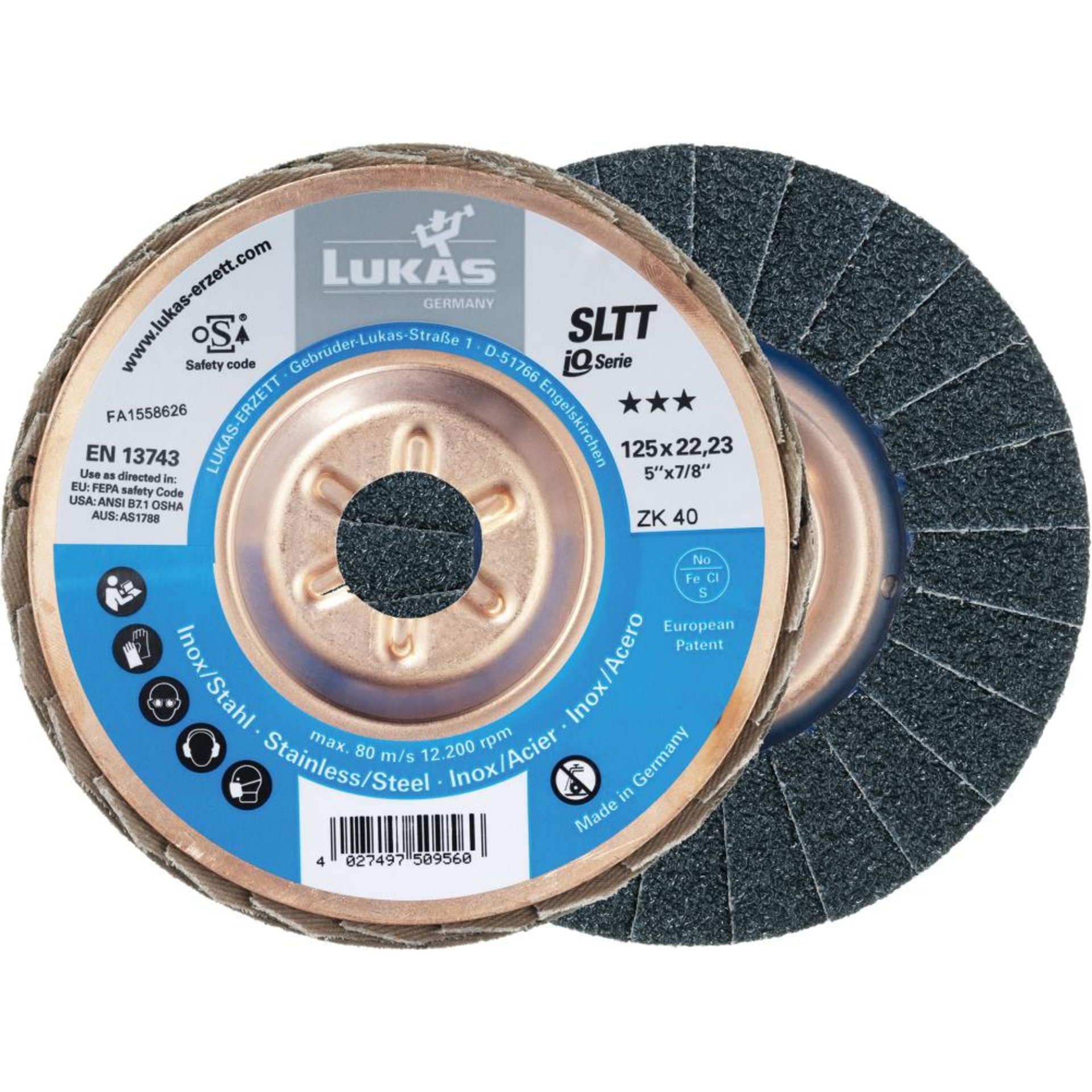 Fächerschleifscheibe SLTTStahl 125mm ZK 60 Lukas-Erzett