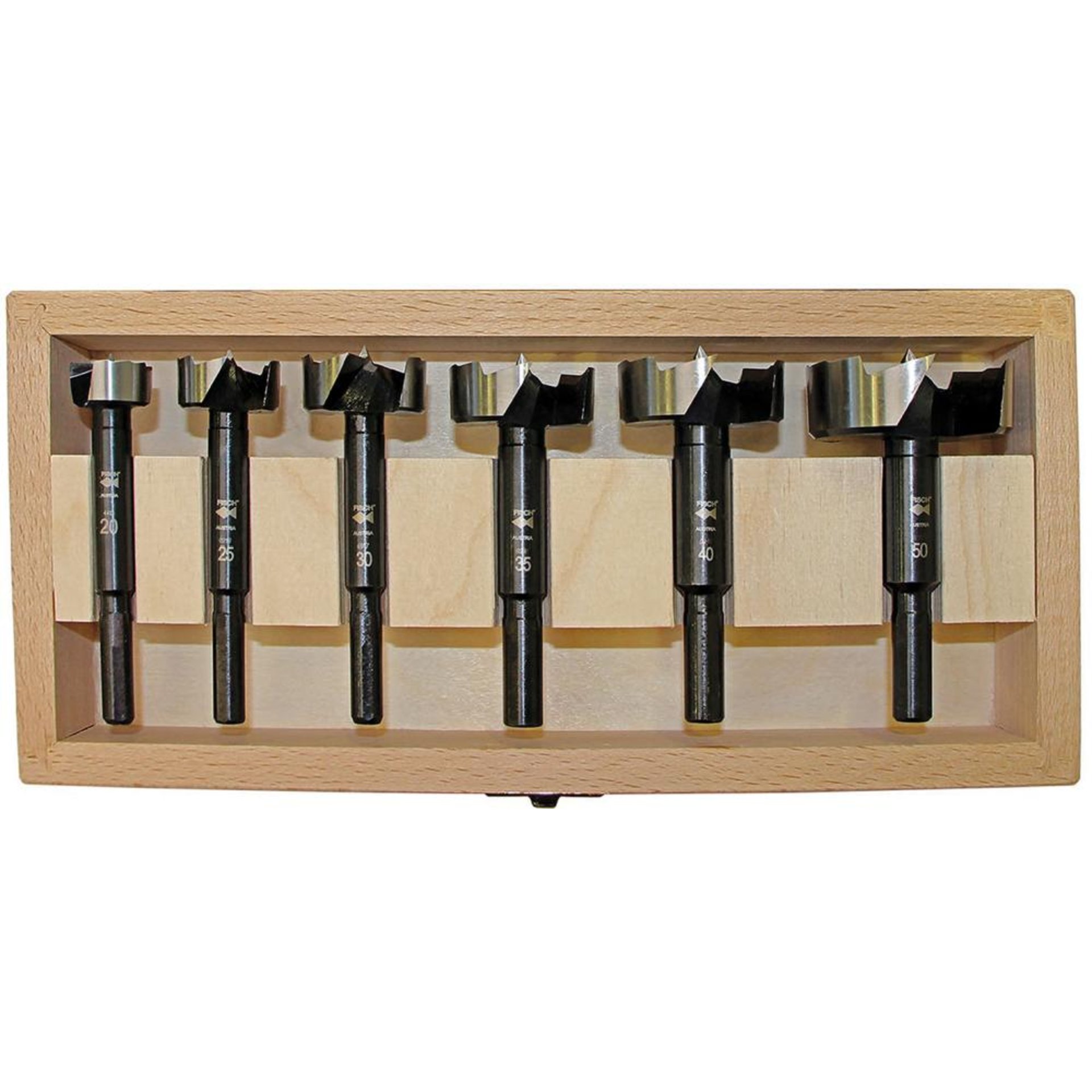 Inhalt: 6 Forstnerbohrer 20; 25; 30; 35; 40; 50 mm.
