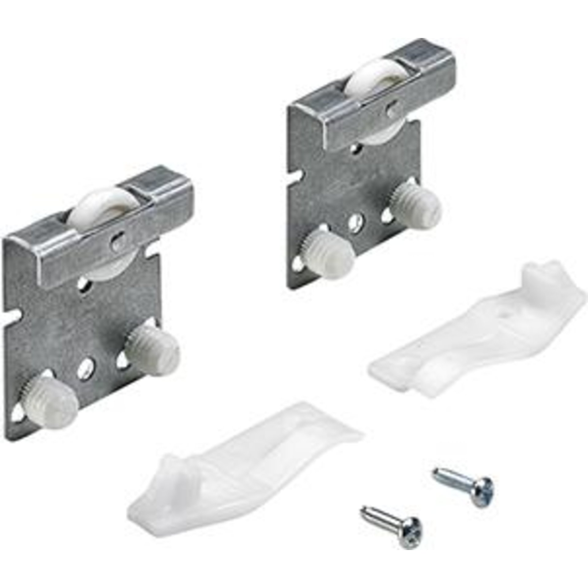 2 Stück Laufteile, 2 Stück Sicherungsschrauben, 2 Stück Endanschläge Laufprofil