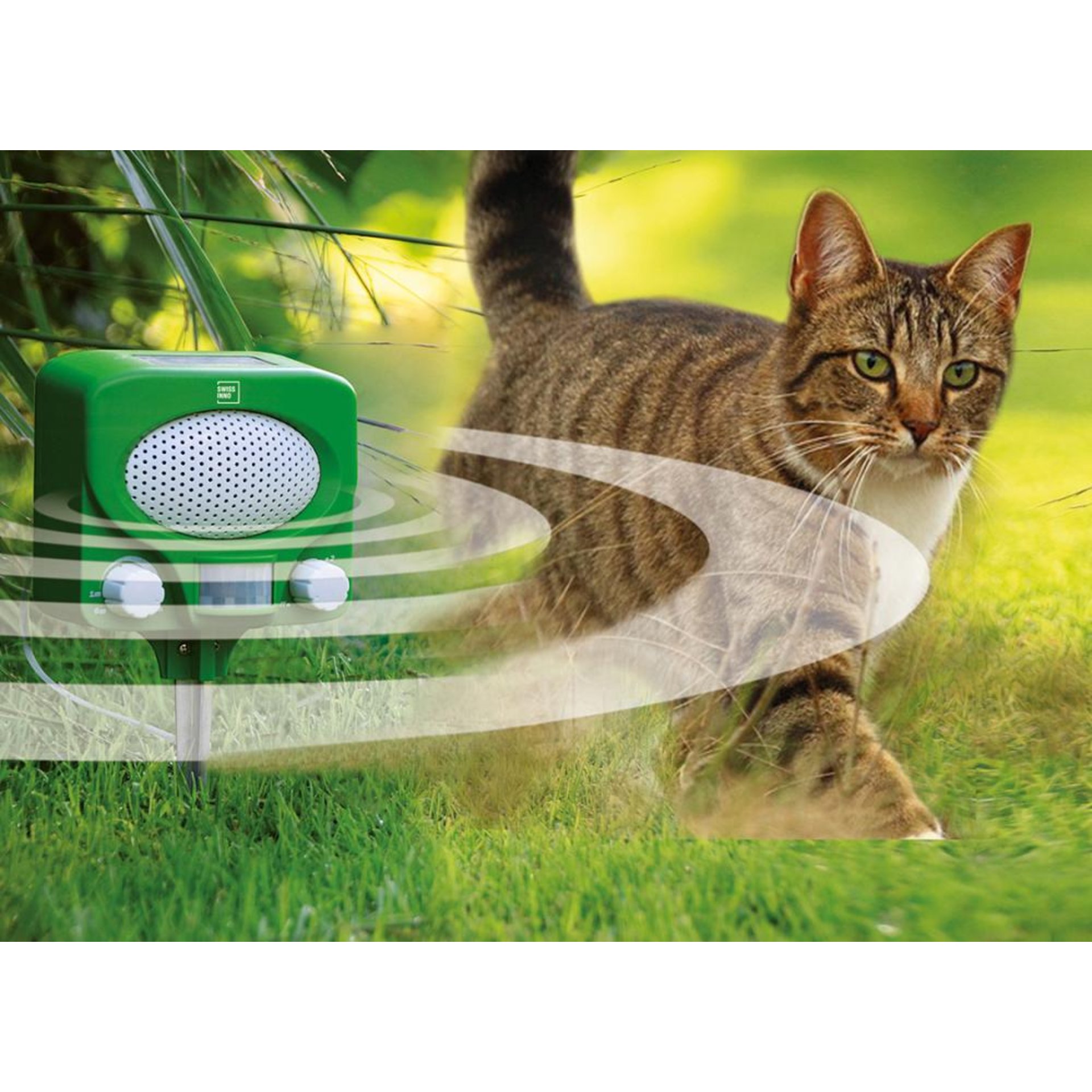 • Erkennt und vertreibt Nagetiere, Katzen, Kaninchen, Hunde und andere störende Tiere im Garten