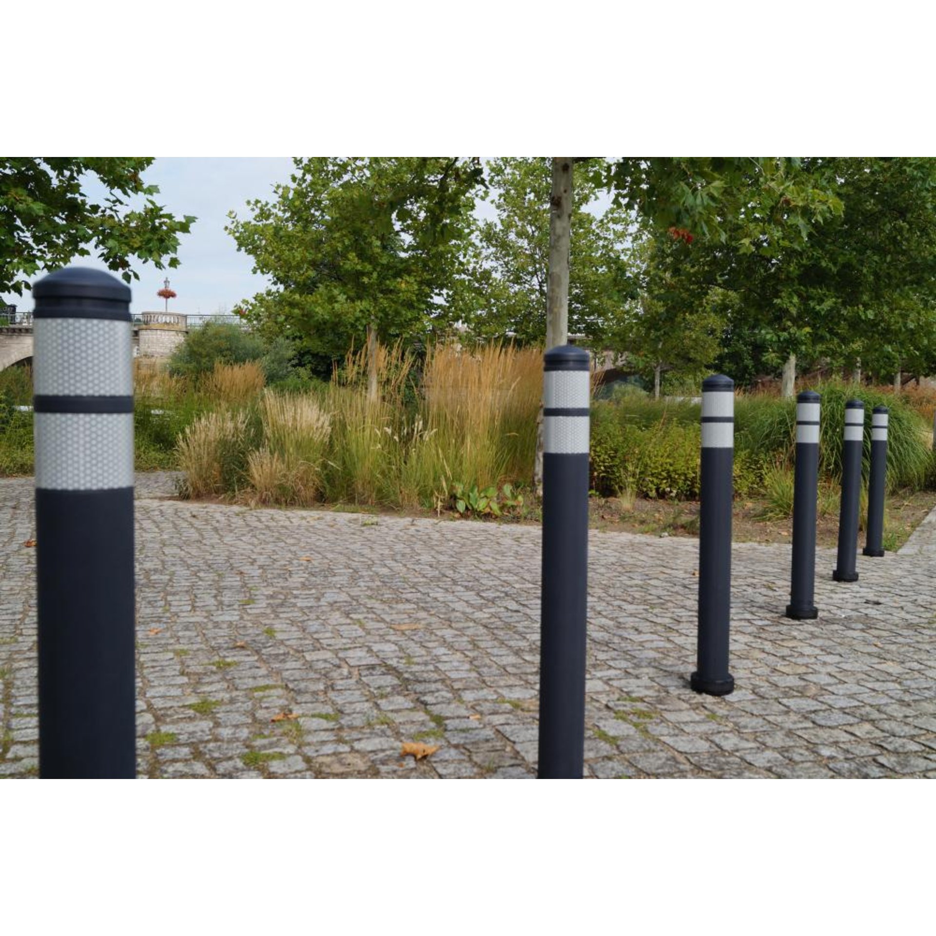 • Stilpoller für Wege und Plätze in runder Form mit flachem, abgerundetem Kopf