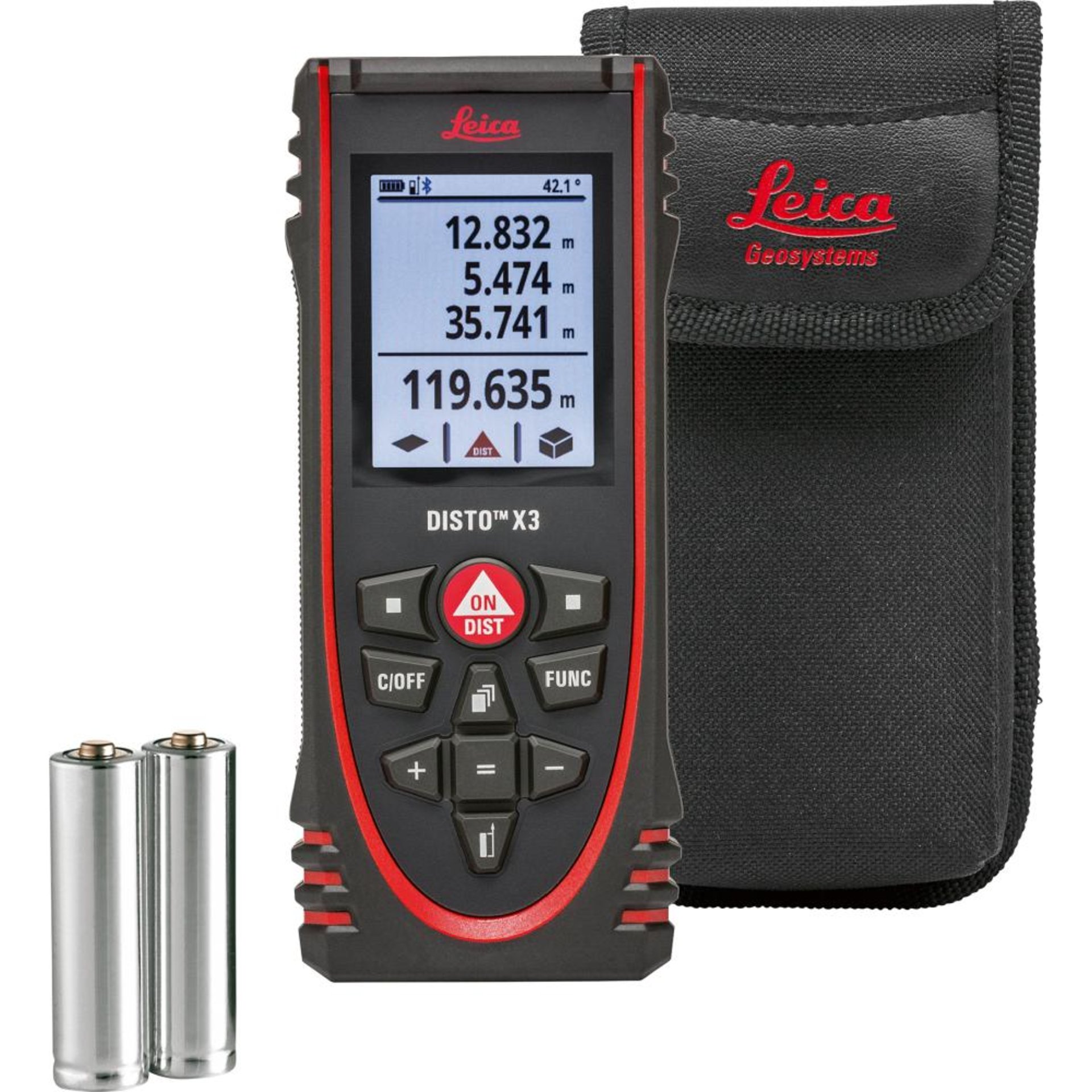 • Geeignet zur Distanzen-, Volumen-, Flächenberechnung, Pythagorasfunktion, Bestimmung indirekter Höhen und Weiten und Dauermessung